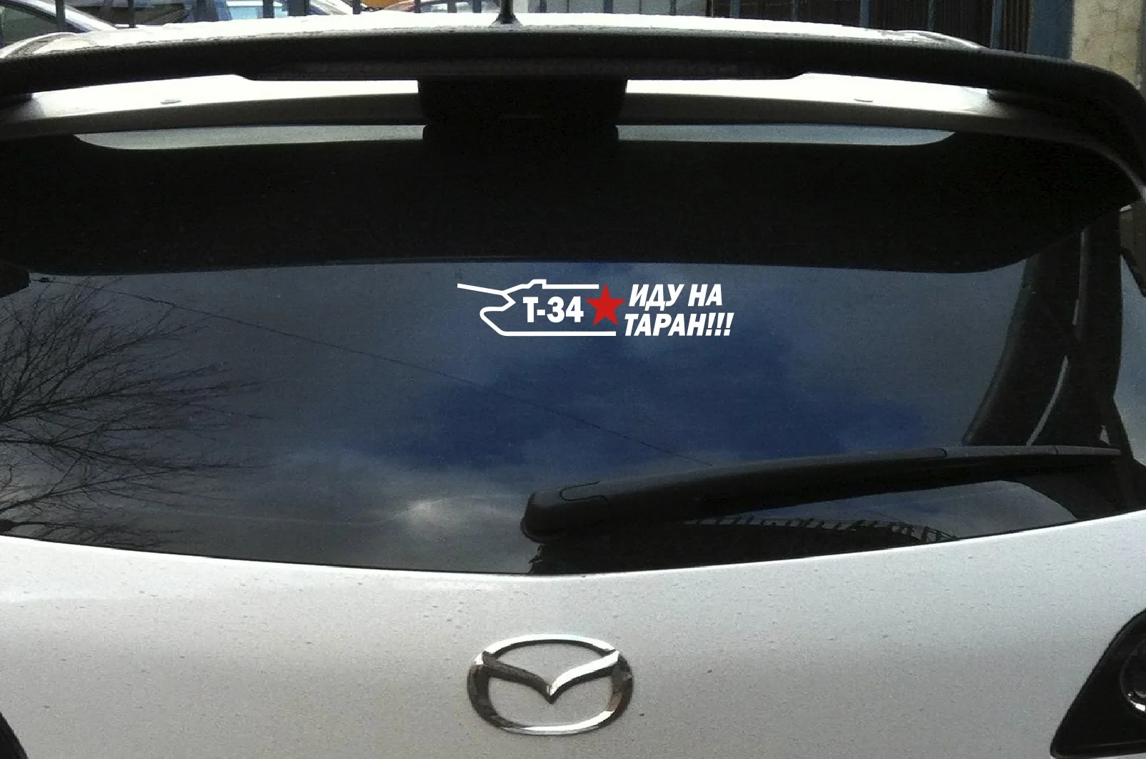 Наклейка на авто к 9 мая иду на таран, виниловая наклейка без фона
