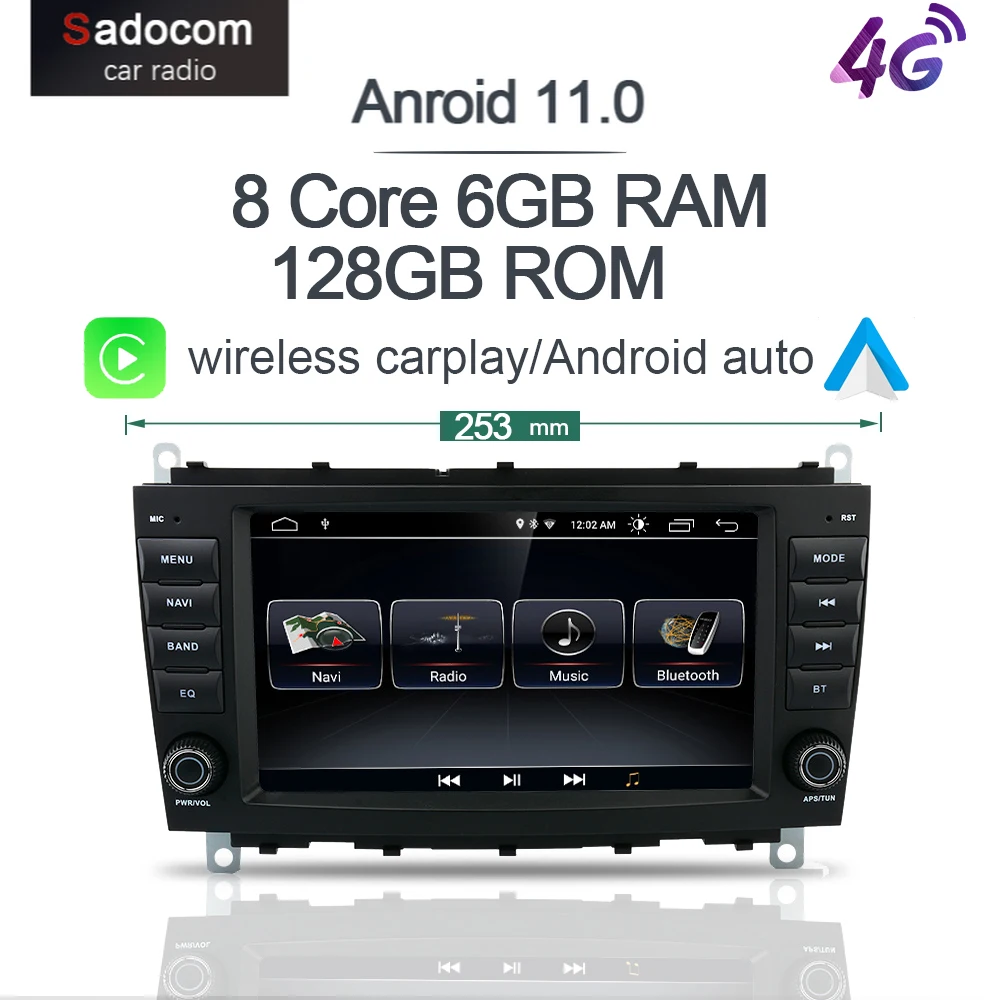 720P Carplay 8 "Android 11,0 6G + 128G автомобильный DVD плеер авторадио GPS навигация для Benz CLK 200K 280 300 350 W209 2005-2012 радио