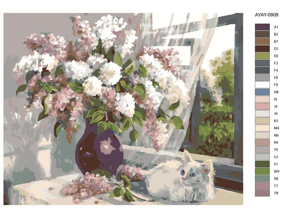 Картина по номерам Живопись по номерам "Котёнок и букет цветов", 40x50 см, AYAY-0908