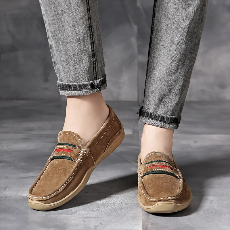 Мокасины мужские из коровьей замши, дизайнерские брендовые модные мягкие лоферы, натуральная кожа, обувь на плоской подошве для вождения, осень