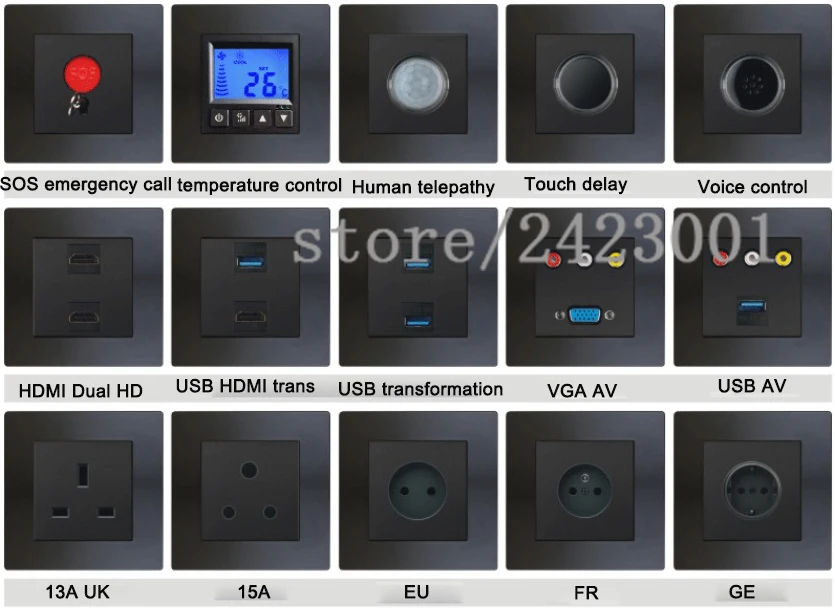 Розетка переключателя из алюминиевого сплава, 86 типов, 1, 2, 3, 4,...