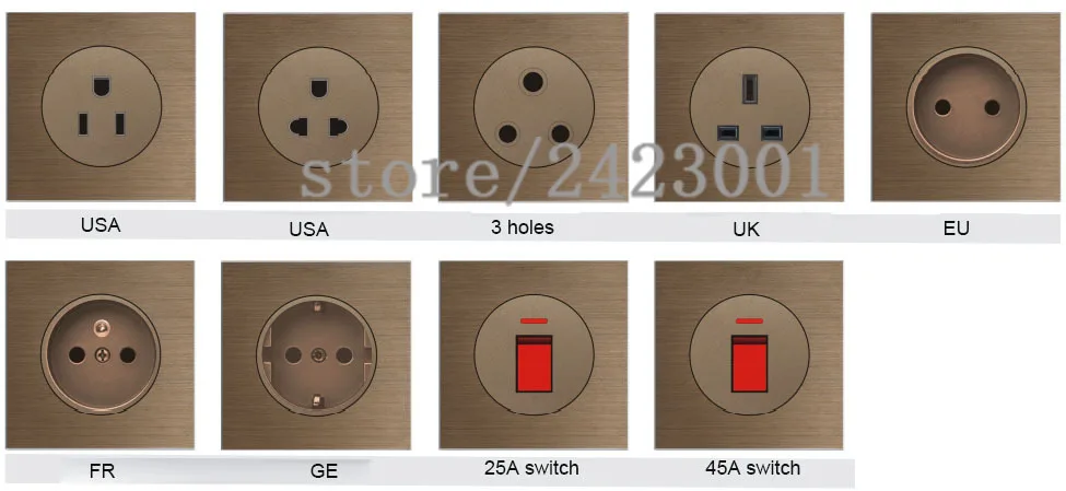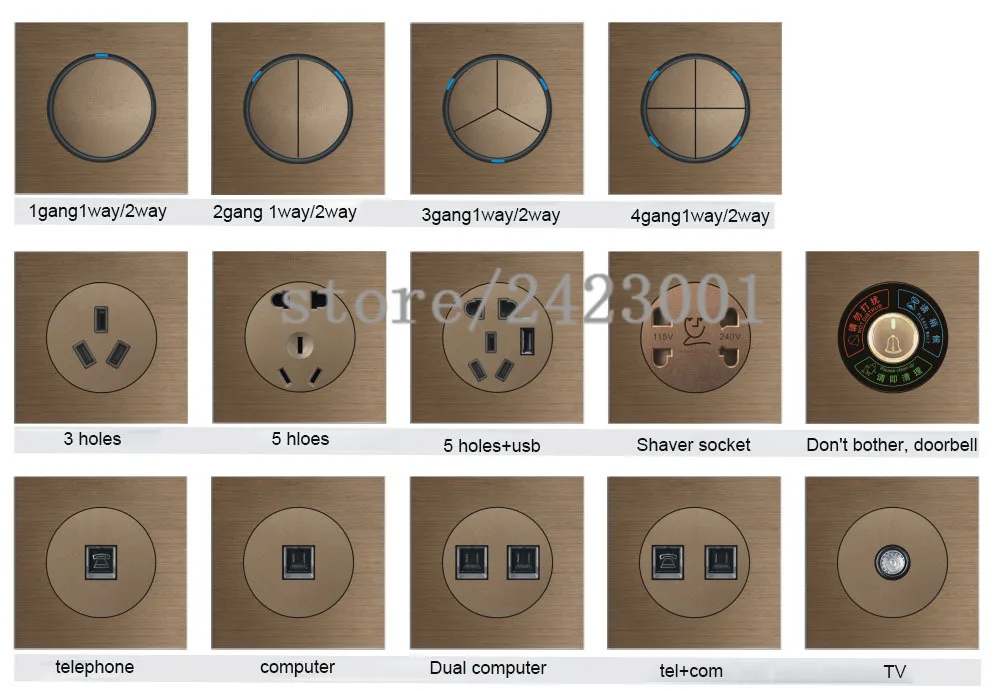 86 Тип 1 2 3 4 gang 1 2Way кофейный алюминиевый сплав панельный выключатель розетка с пятью отверстиями Европа промышленный переключатель Франция Германия Великобритания розетка