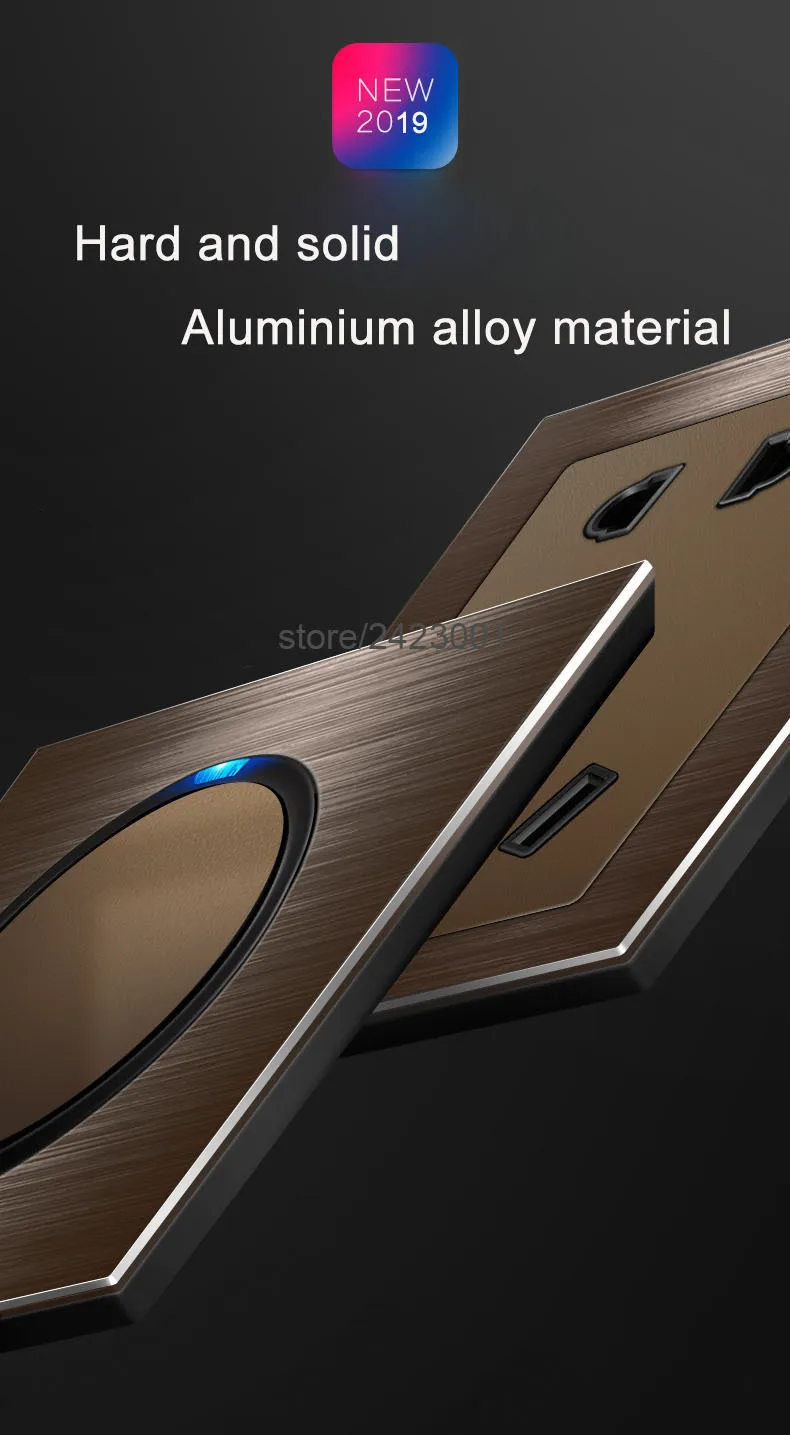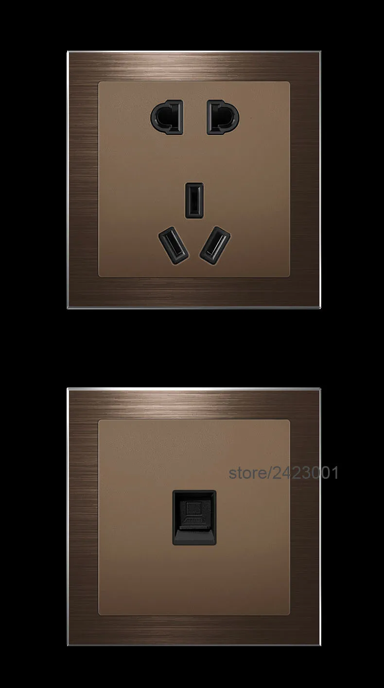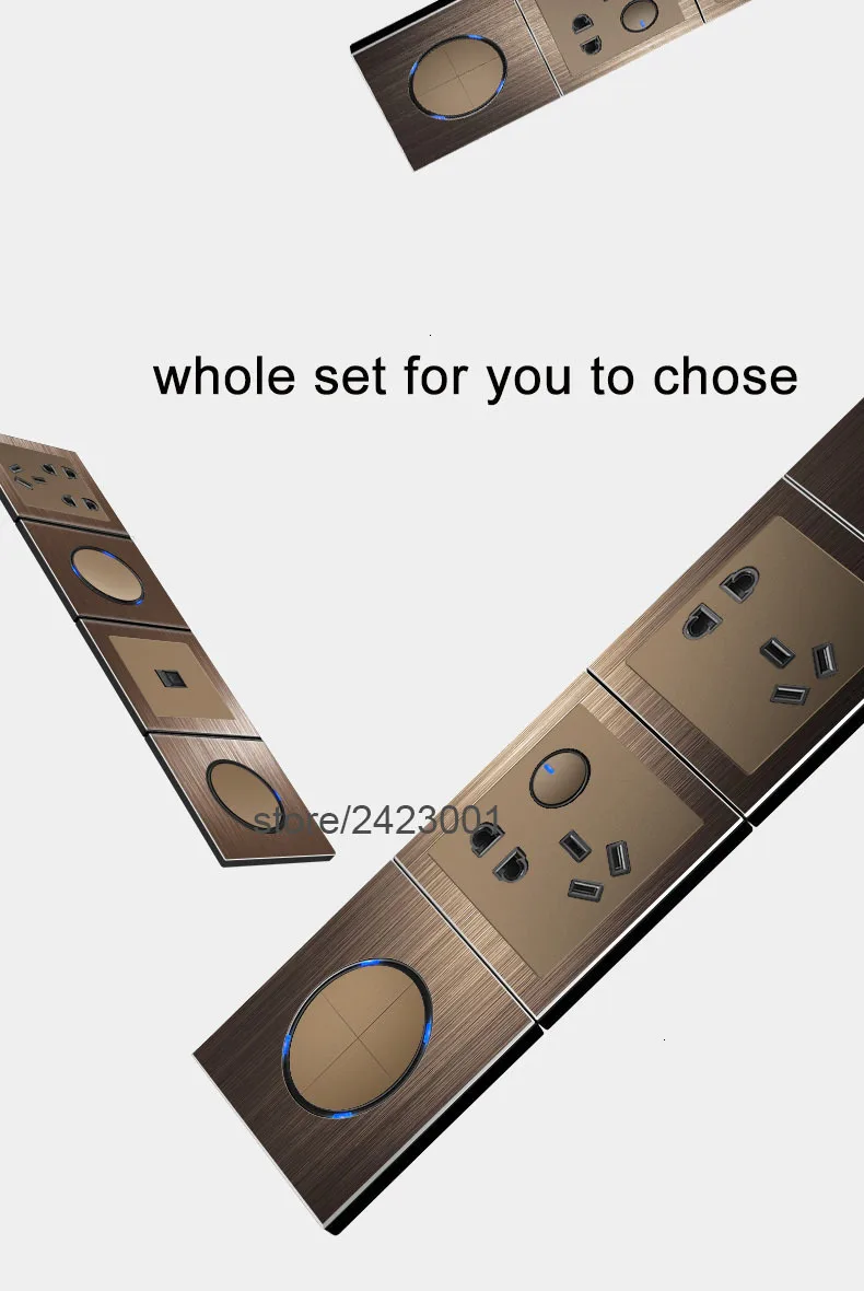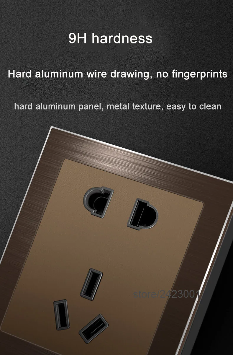 Панель переключателя из алюминиевого сплава кофе, розетка 86 типа 1...