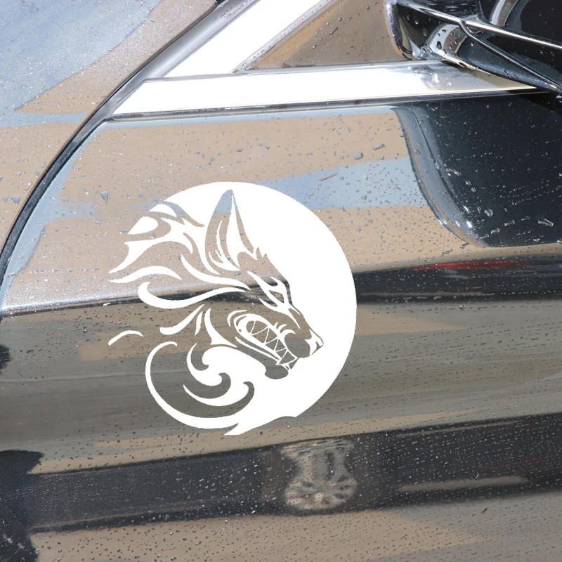 Свирепый волк, автомобильные наклейки в лунном свете, модное украшение окна, ПВХ водонепроницаемые наклейки, черныйбелыйкрасныйлазерсеребристый