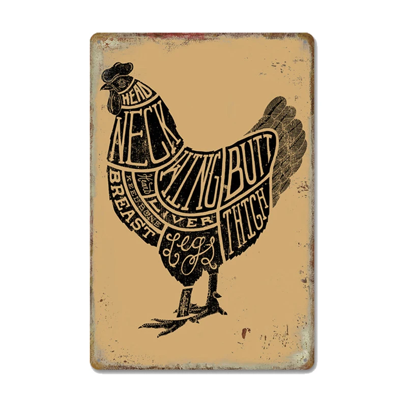 Посылка входит: 1 шт. x жестяная вывеска с цыпленком