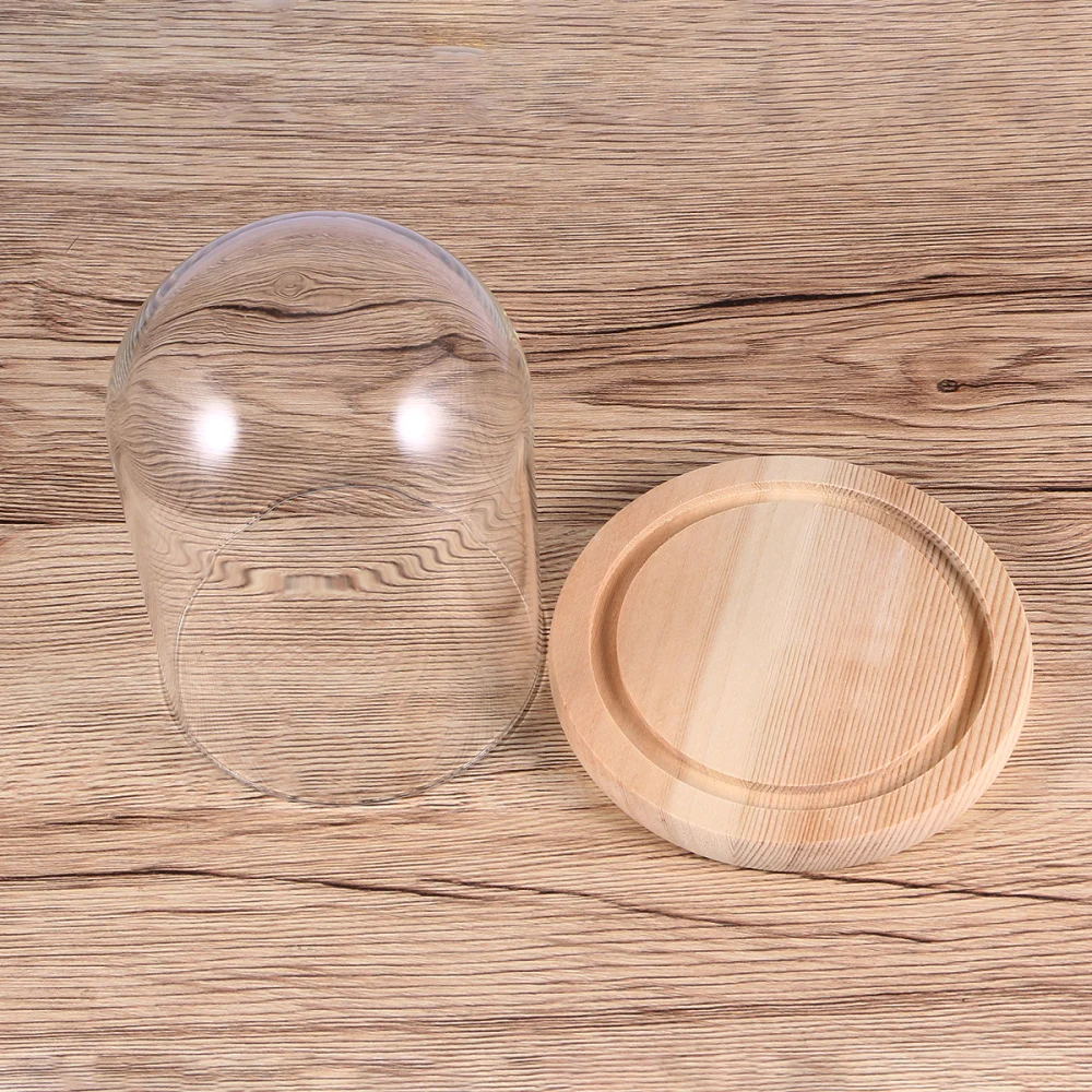 Акриловая прозрачная стеклянная крышка для цветов, бутылка для террариума с деревянной основой, демонстрационная коробка, неувядающий цветочный дисплей, подставка, крышка, коробка