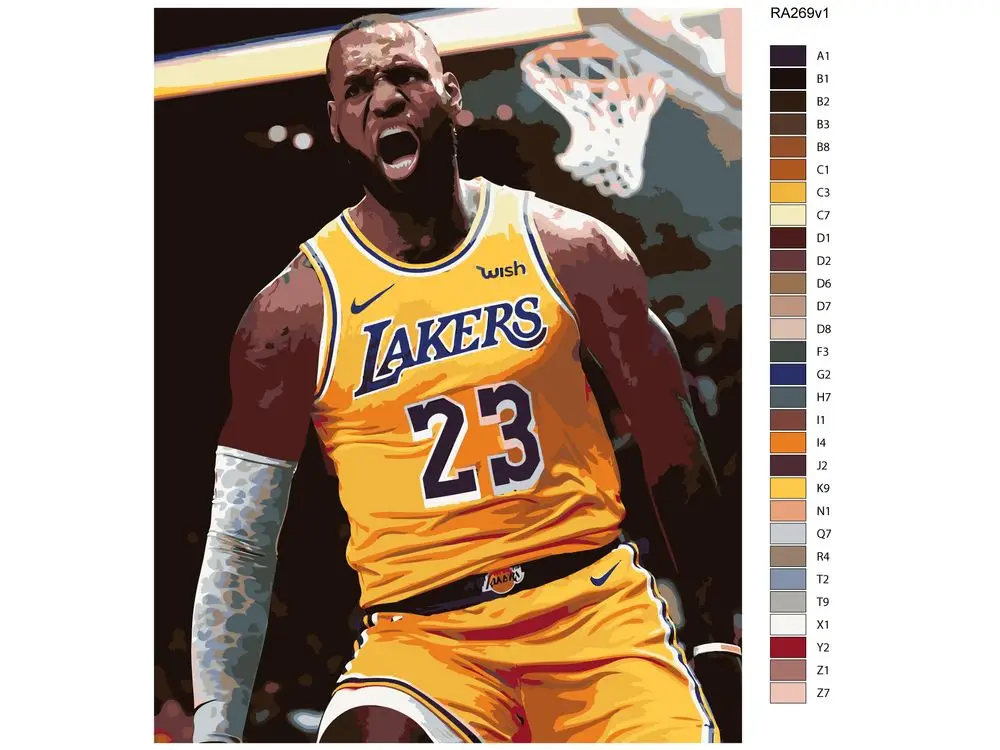 Картина по номерам "Леброн Джеймс" - это набор для создания готового произведения искусства. На холст нанесён контур будущего шедевра. Все области пронумерованы и соответствуют номерам красок. Всё, что нужно сделать раскрасить каждый сектор тем номером краски, который в нём проставлен. Все оттенки заранее подобраны, а контуры специально проработаны профессиональными художниками. Набор для создания картины "Леброн Джеймс" подойдёт для любого возраста и не требует художественных навыков. А готовая работа отлично подойдёт в качестве подарка или украшения к интерьеру.