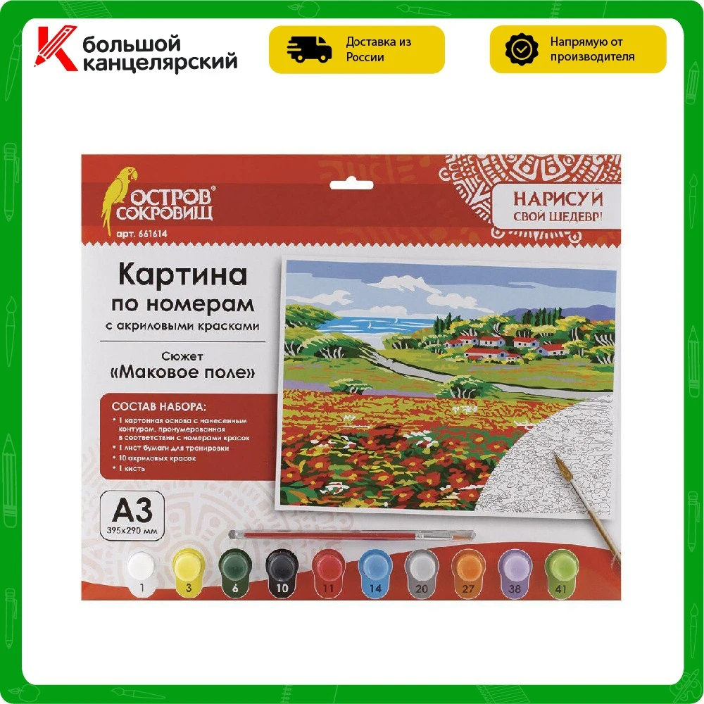 Картина по номерам А3, Остров Сокровищ Маковое Поле, С Акриловыми Красками, картон, кисть, 661614