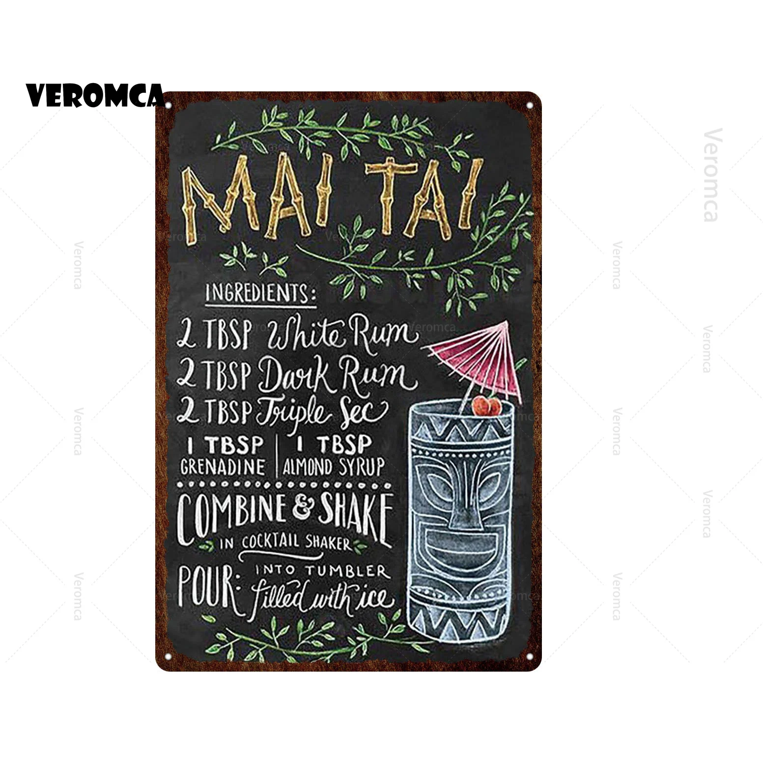 Ретро Куба Мохито коктейль пиво металлическая табличка знак Тики Ба...