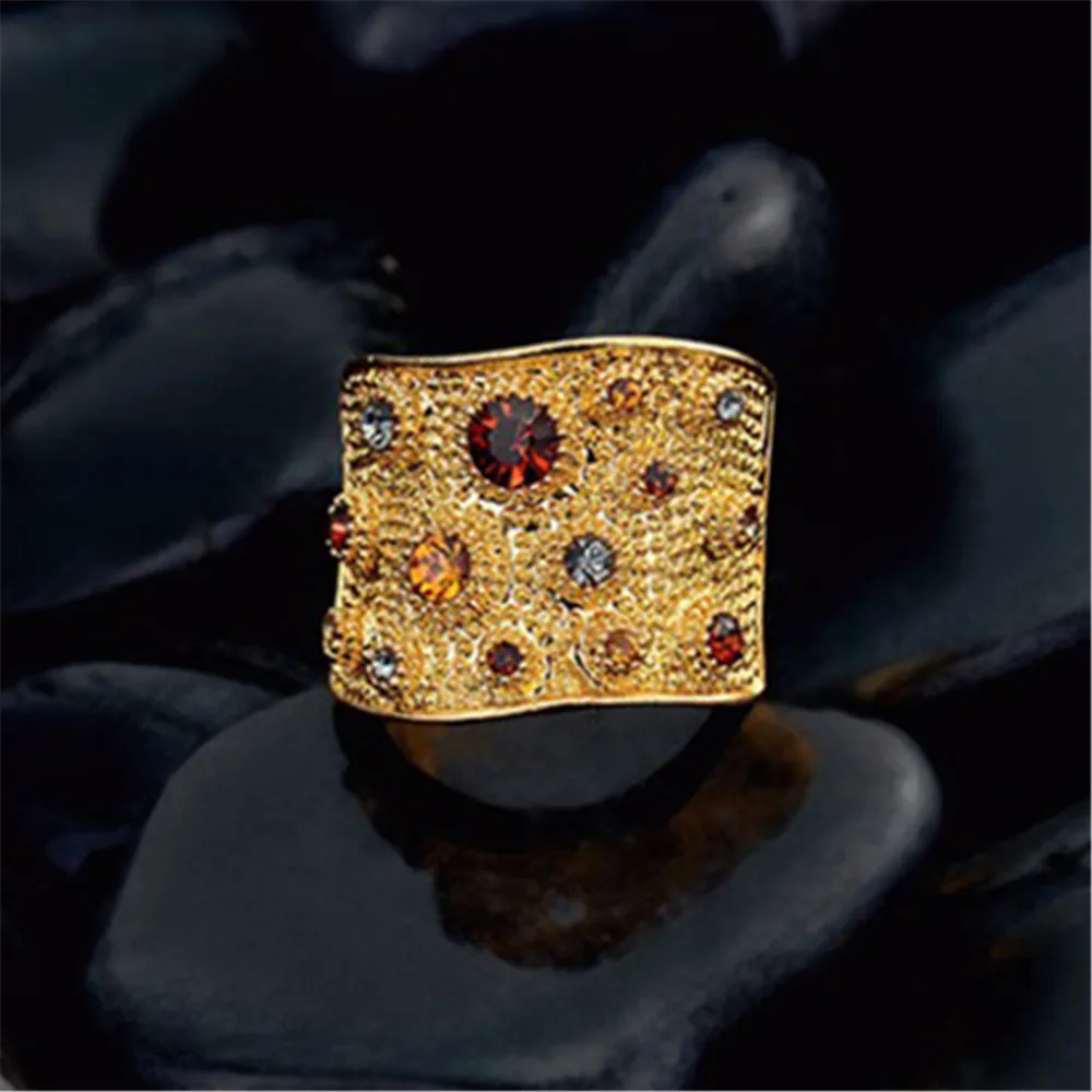 Классическое роскошное модное золотистое кольцо с кристаллами цирко...