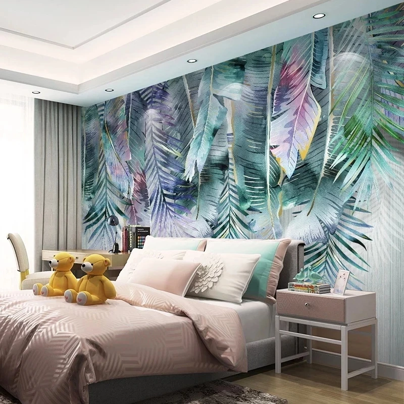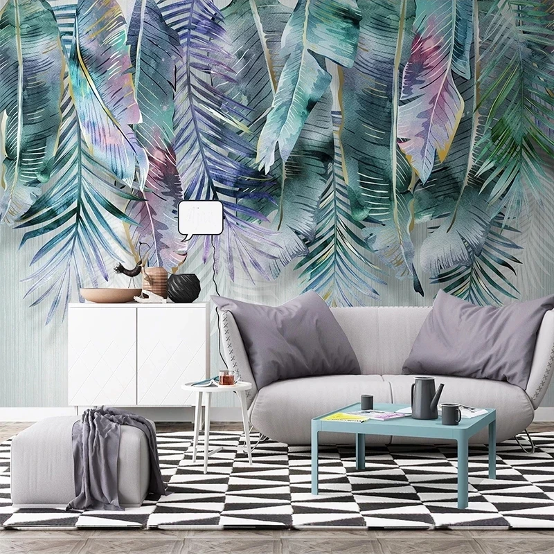 Настенные обои на заказ, самоклеящиеся 3D-обои с тропическими растениями, листьями, фоновая живопись для спальни, гостиной, Декор, водонепроницаемые