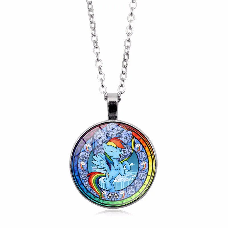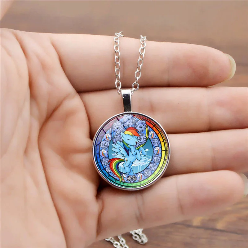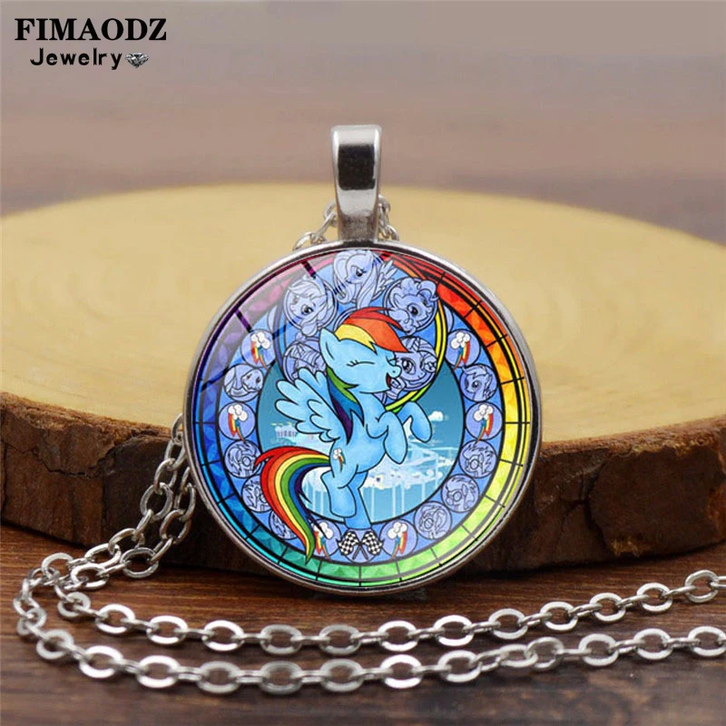 FIMAODZ, милое ожерелье My Little Ponys, мультяшный Единорог, стеклянная художественная фотография, серебристо-черная цепочка, кулон для детей, подарок на день рождения, ювелирные изделия