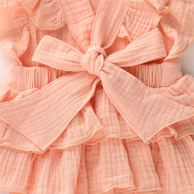 Wallarenear Горячая для новорожденных и малышей, для маленьких девочек одежда с оборками хлопок сплошной Цвет без рукавов, комбинезон, комбинезон, комплект одежды повседневный комплект для детей