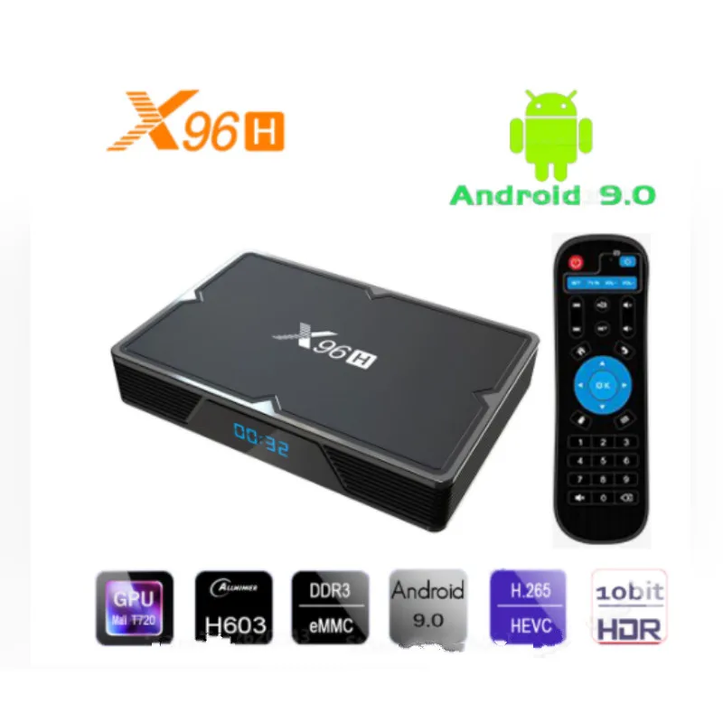 ТВ-приставка X96H на Android 9,0, четырехъядерный процессор Allwiner H603, медиаплеер, 1 выход, 1 вход, 3 USB-порта, 4K HD, 4 ГБ, 64 ГБ
