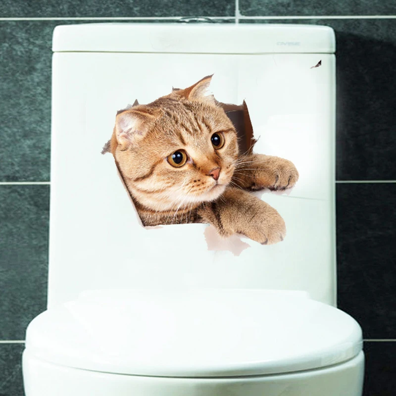 Модные яркие 3D кошки животных наклейки для туалета прекрасный наклейка на стену домашний декор, искусственные поделки без отверстий, санузел плакаты ПВХ мультфильм Wall Art Наклейки