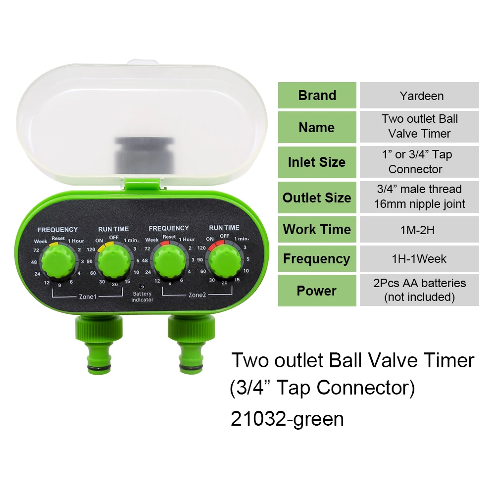 Два выхода шаровой клапан Таймер 21032-зеленый