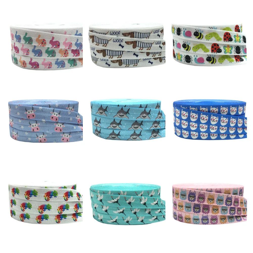 5 ярдов 15 мм кролик Кошка Собака Фламинго печать складывается над эластичной лентой для шитья волос галстук ремень украшение для рюкзака аксессуары