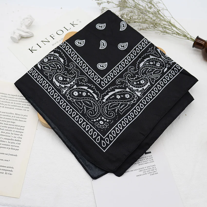 Бандана унисекс, черная бандана в стиле хип-хоп, спортивный головной убор, шапка на запястье, квадратный шарф, хиджаб носовой платок с принтом