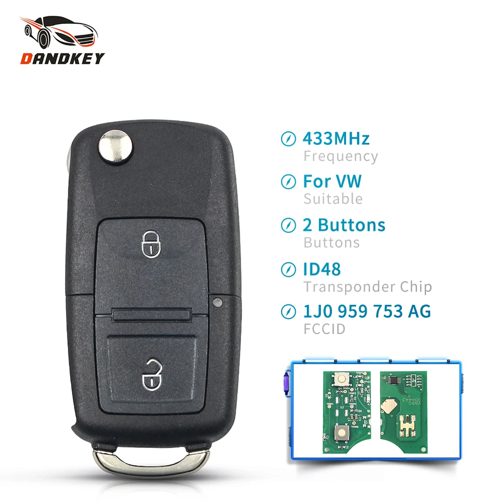 5 шт., автомобильный пульт дистанционного управления Dandkey 433 МГц ID48 для Volkswagen VW Beetle Bora Passat B5 Golf 1J0 959 753 AG 1J0959753AG