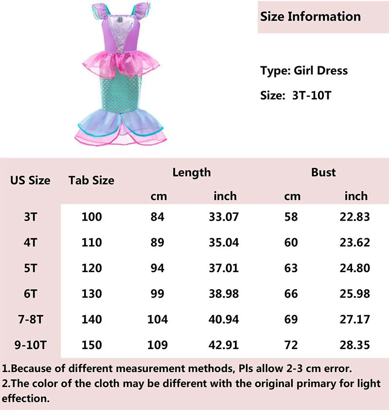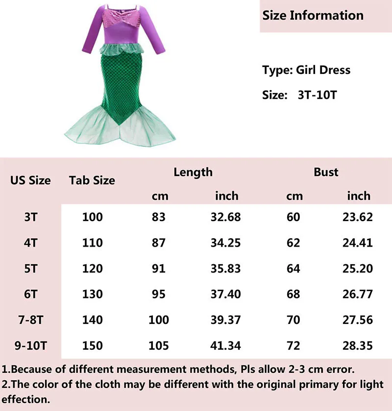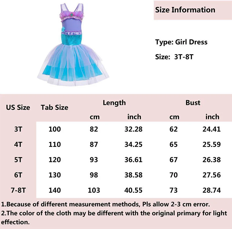 Детское платье русалки, платье Ариэль для маленьких девочек, Детски...
