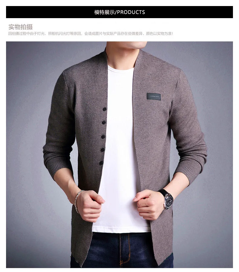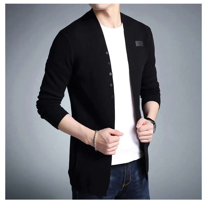 Новинка, модный вязаный кардиган на весну и осень, мужская повседневная одежда, корейский облегающий Модный черный серый свитер, кардиган для мужчин