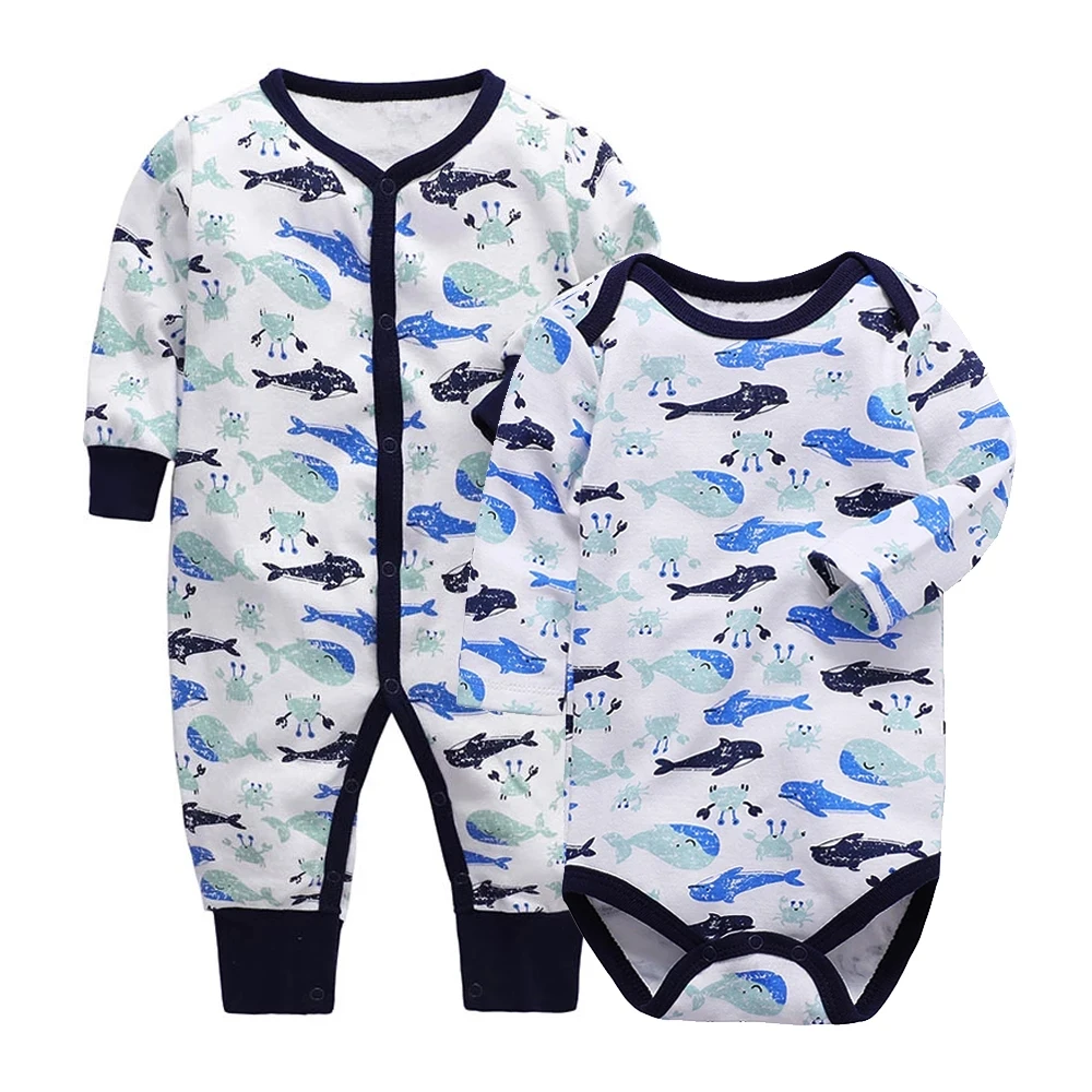 Одежда для малышей От 0 до 2 лет для маленьких мальчиков Боди с длинными рукавами для новорожденных; Комбинезон с рисунком Кита из мультфильма хлопковые осень-зима костюм
