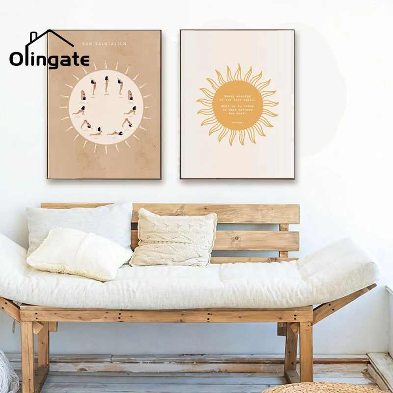 Будды картина с цитатой приветствие солнцу принты Сурья Йога плакат Настенные картины Boho Стиль Одна деталь для дома Декор для дома