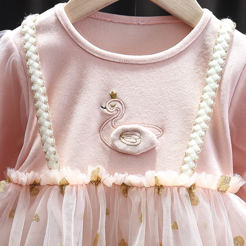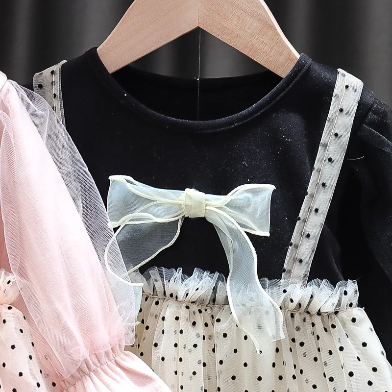 Весеннее платье для девочек; Детские платья принцессы с длинными рукавами и бантом для маленьких детей; Осенняя одежда для девочек из двух предметов; Vestidos
