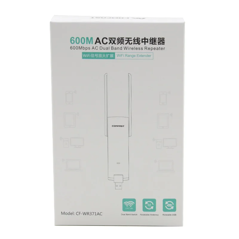 Несколько режимов питания, гибкий USB-источник питания, двухдиапазонный 802.11ac нового поколения, более быстрая скорость, хорошая совместимость, Совместимость с основными роутерами и беспроводными сетевыми картами и т. Д.;