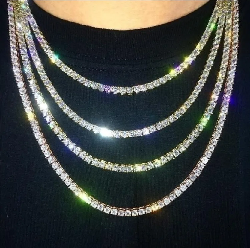 Мода льдом браслет ожерелье для мужчин ссылка теннис цепи модные хип-хоп ювелирные изделия из жемчуга для женщин 18/20/22/24/26 дюймов Колье цепи подарок