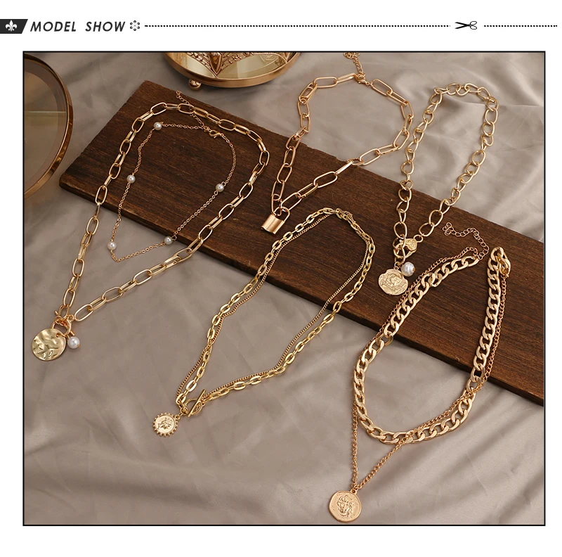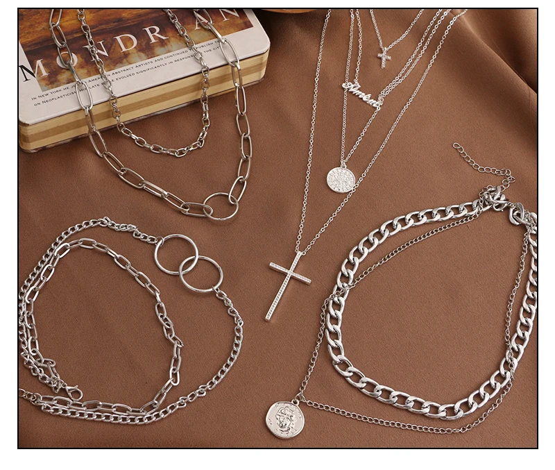 Женское винтажное ожерелье VKME с золотым крестом, длинная цепочка в богемном стиле, многослойная подвеска с буквами, очаровательные ожерелья, ювелирные изделия 2021
