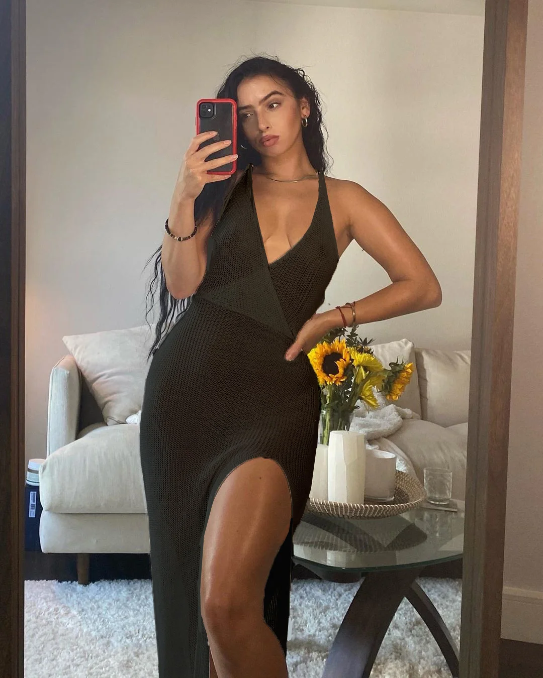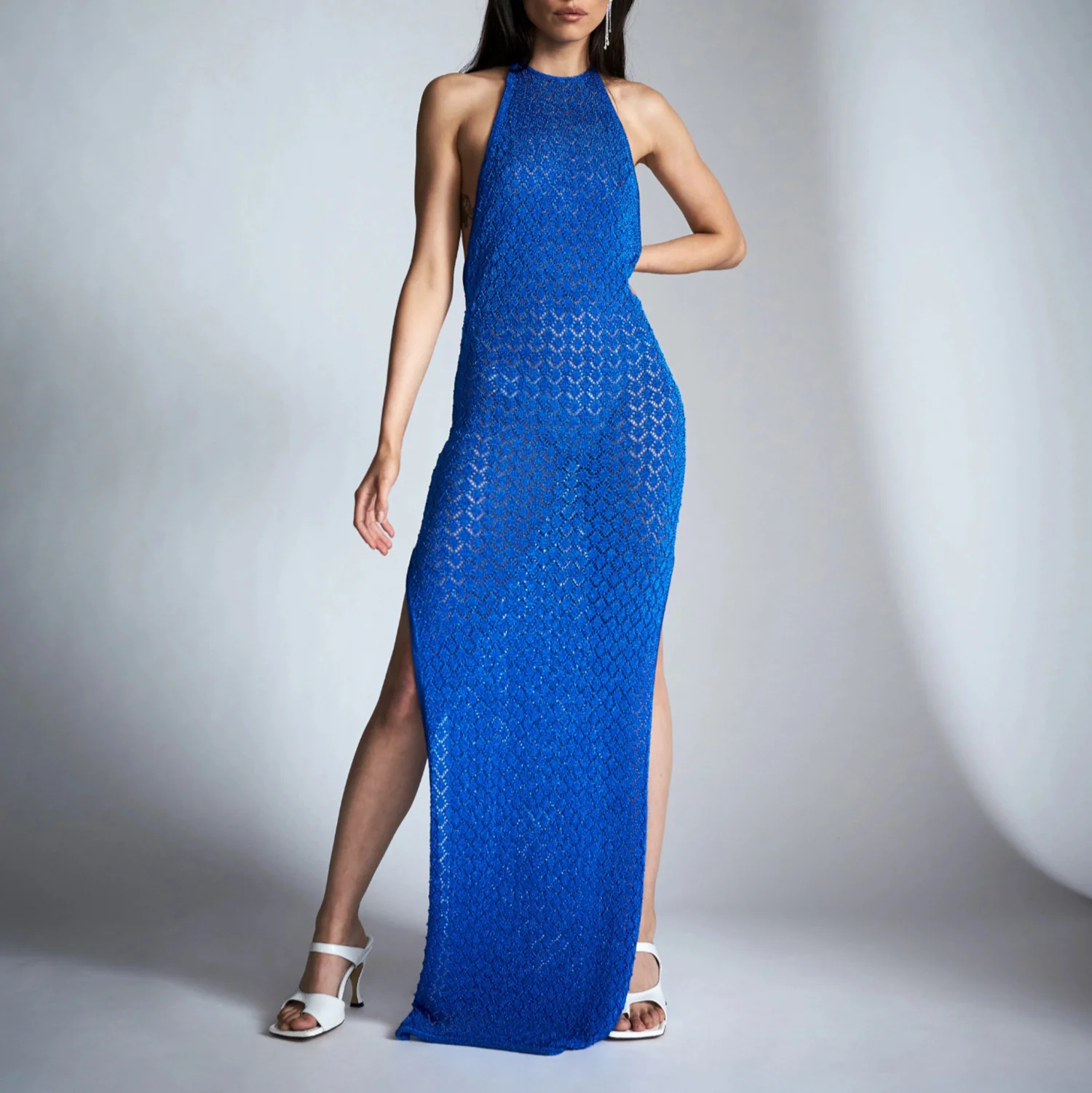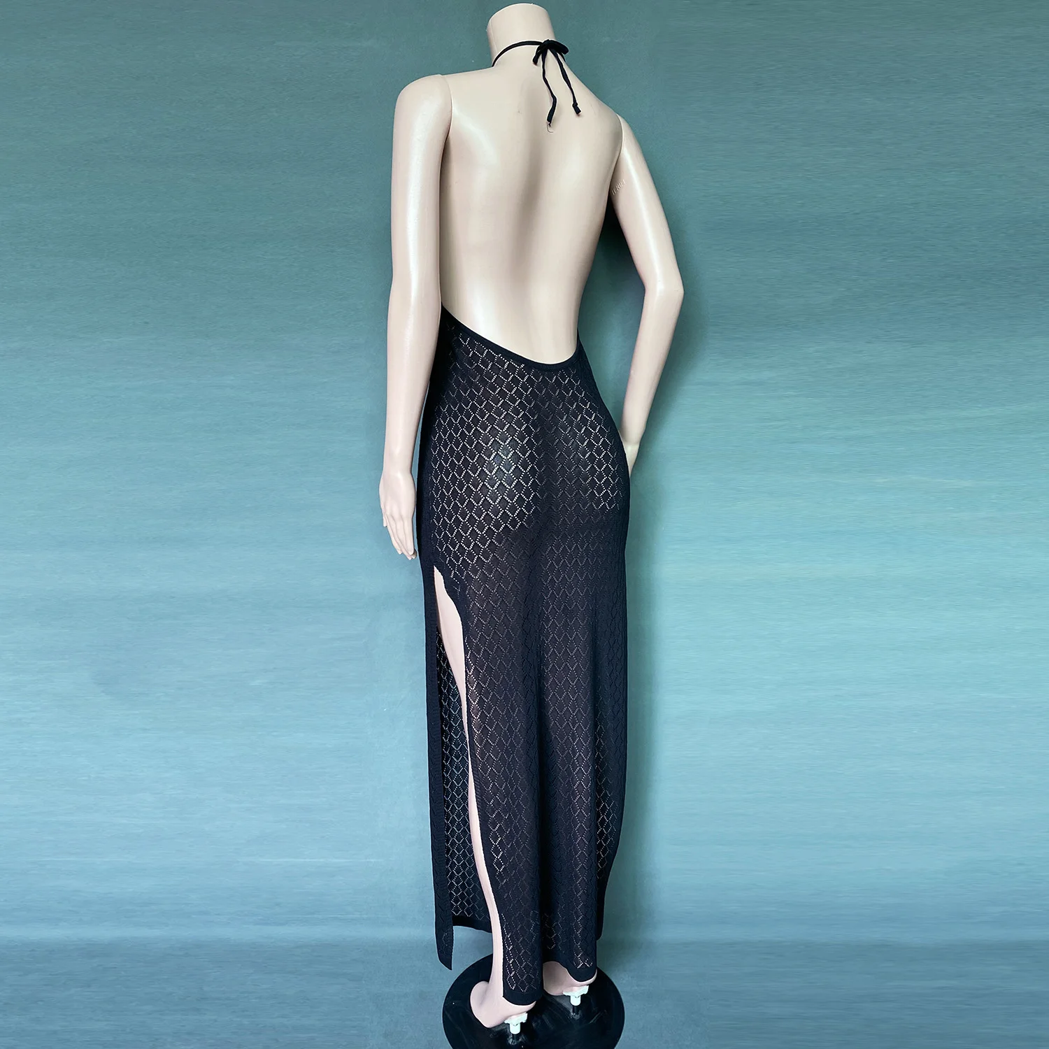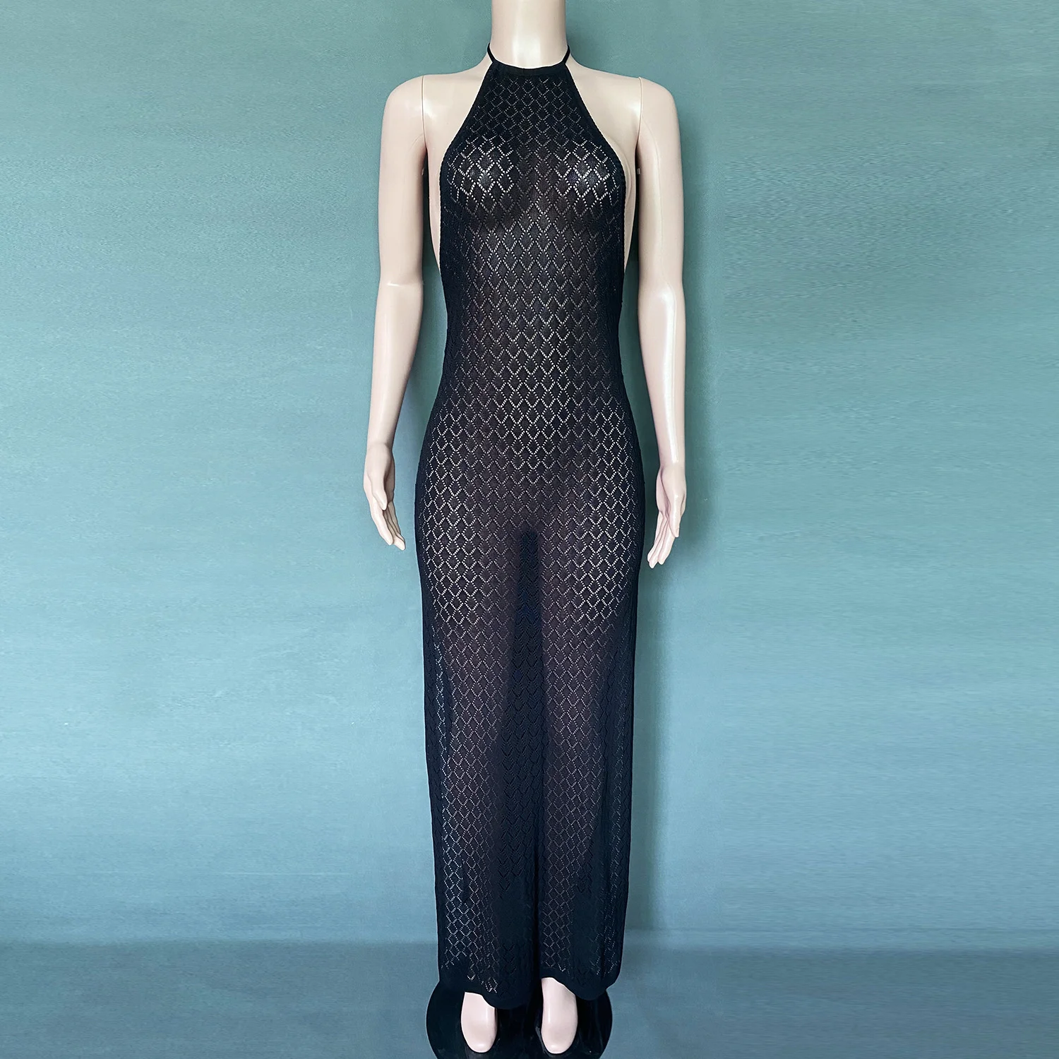 Женское трикотажное Прозрачное Платье макси с открытой спиной и лям...