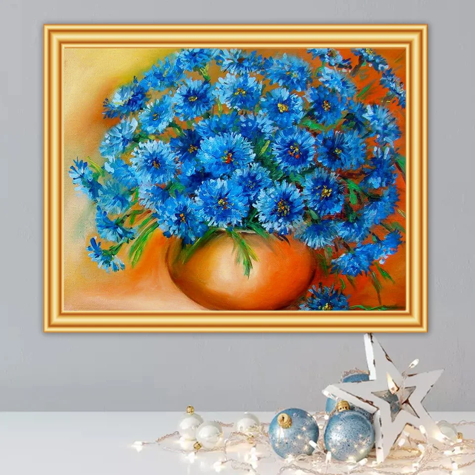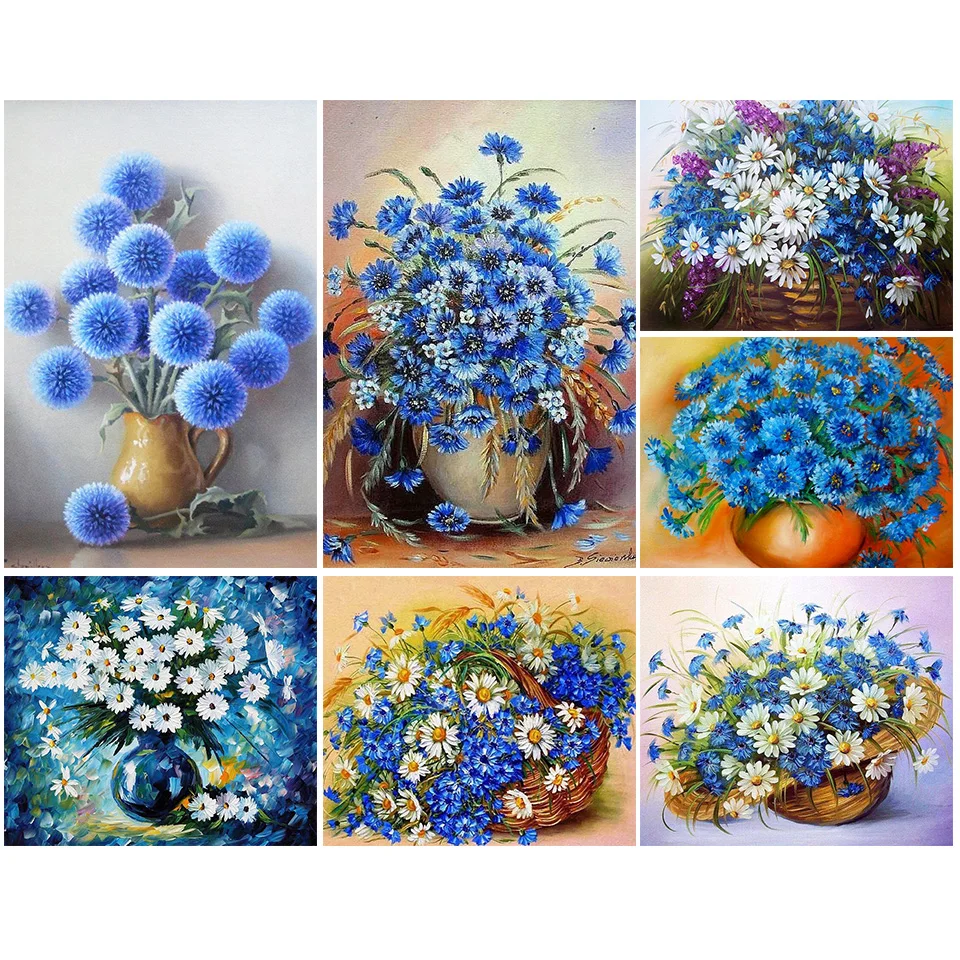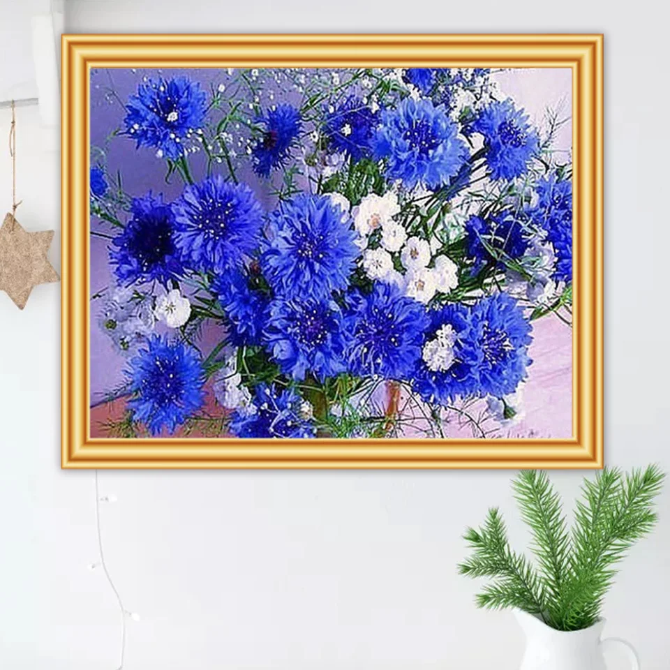 Алмазная картина 5D "сделай сам", синий василек, Набор для вышивки крестиком, квадратная мозаика, картина с цветами, декор для Стразы