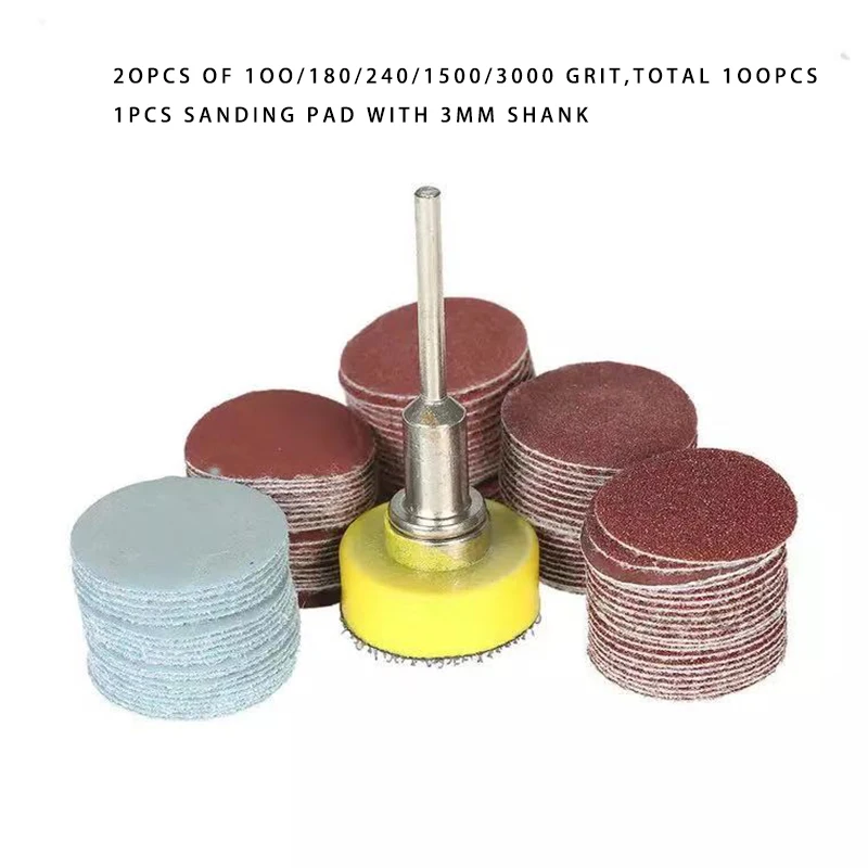 Наждачная бумага с липучкой, 100 шт., 1 дюйм25 мм, зернистость 100-3000, с хвостовиком 18 дюйма, Подложка для шлифовального станка, вращающиеся инструменты