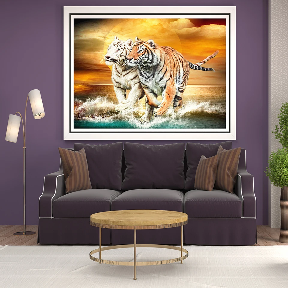 Алмазная живопись с тигром 5D, животное, алмазная вышивка, украшение для дома, живопись, полноразмерная алмазная живопись, картина на стену