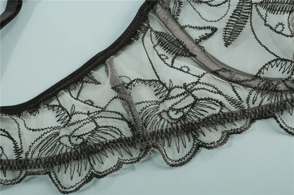 Embrodieryсексуальное эротическое нижнее белье, комплекты бюстгальтеров, прозрачное кружевное женское нижнее белье, бюстгальтер пуш-ап + подвязки + стринги, комплект из 3 предметов