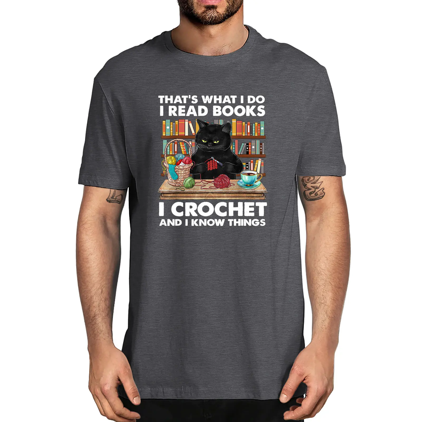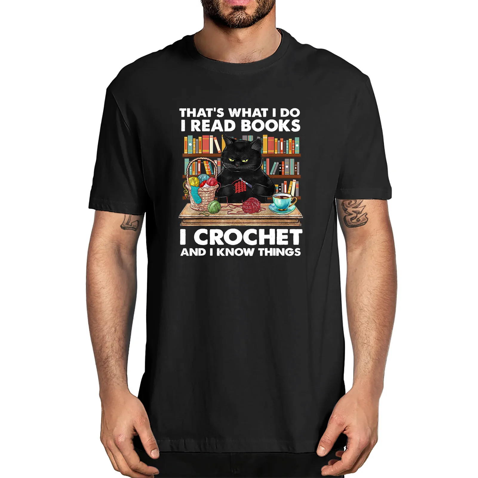 Забавная футболка унисекс Вот что я делаю, я читаю книги и я знаю вещи, забавная черная футболка с кошкой, Мужская футболка из 100% хлопка, Новинка