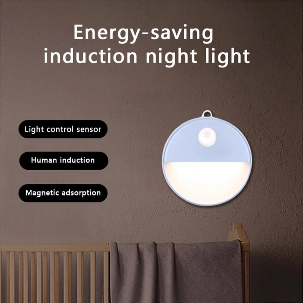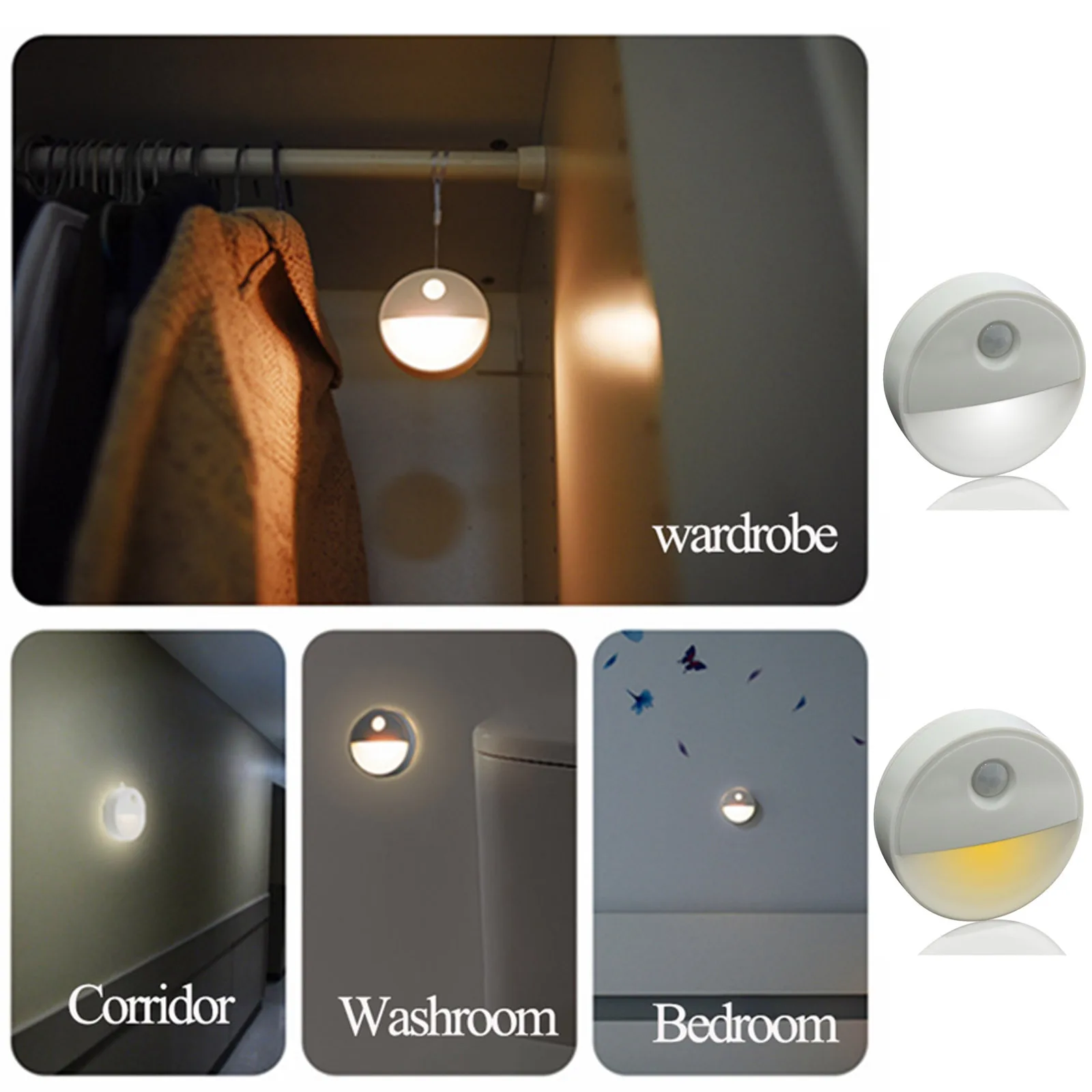 Настенный ночник с пассивным инфракрасным датчиком движения, светодиодный светильник на батарейках для шкафа, спальни, кухни, лестницы, магнитное аварийное освещение шайбы