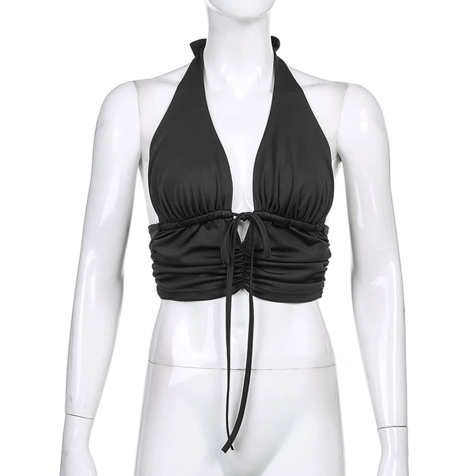 Женский укороченный топ с лямкой на шее Y2K, летний клубный модный однотонный корсет без рукавов и с открытой спиной, облегающий жилет, майки, топы, оптовая продажа, 2021