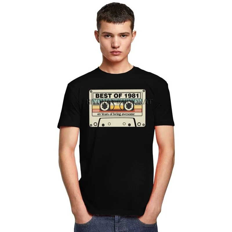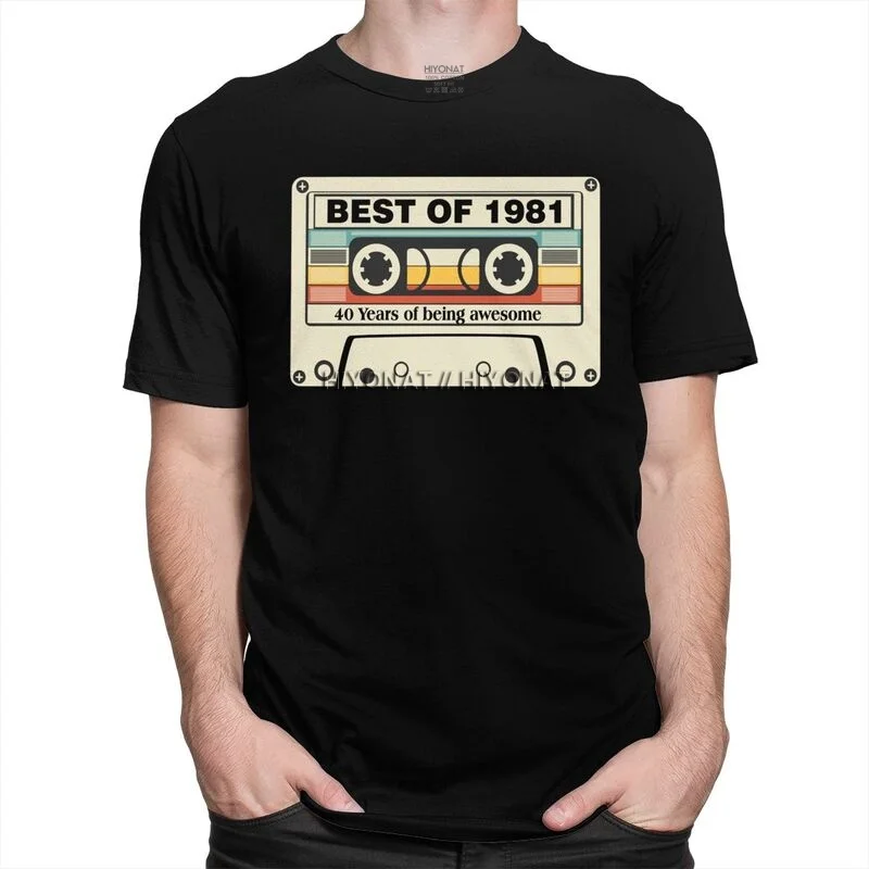 Потрясающая Ретро футболка 1981 с кассетами, Мужская хлопковая футболка, винтажная стильная футболка, топы с коротким рукавом, футболка в подарок на 40-й день рождения, одежда
