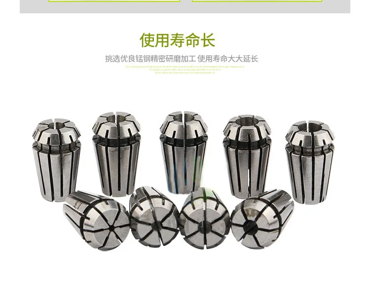 Материал: Высококачественная пружинная стальЦвет: стальной цветТип: ER32Длина: 40 ммДиаметр: 33 ммВнутренний диаметр: 2 /4 /6 /8 /10 /12 /16 /18 /20 мм