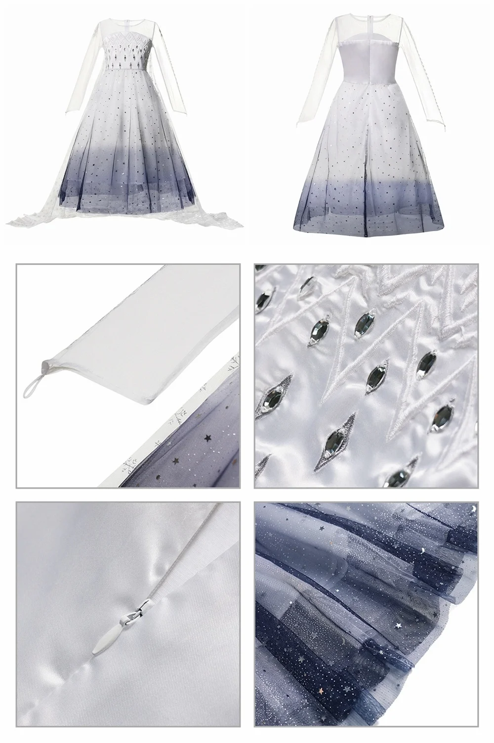 Наименование: осенне-зимнее платье Эльзы; Платье принцессы для косплея Снежной Королевы; 2 белых сетчатого платья с длинными рукавами для выпускного бала; Карнавальные костюмы для детей Материал: полиэстер, хлопок, сетка, тюль Вес: около 0,20-0,33 кг/шт. Возраст: 2 - 10 лет Размер CN: 100-110-120-130-140-150-160 Размер США: 2Т, 3Т, 4Т, От 5 до 6 лет, От 7 до 8 лет, От 9 до 10 лет Посылка: на ваш выбор + полиэтиленовый пакет