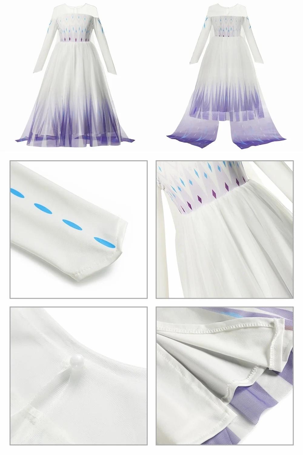 Платье Эльзы с длинным рукавом, белое, для девочек