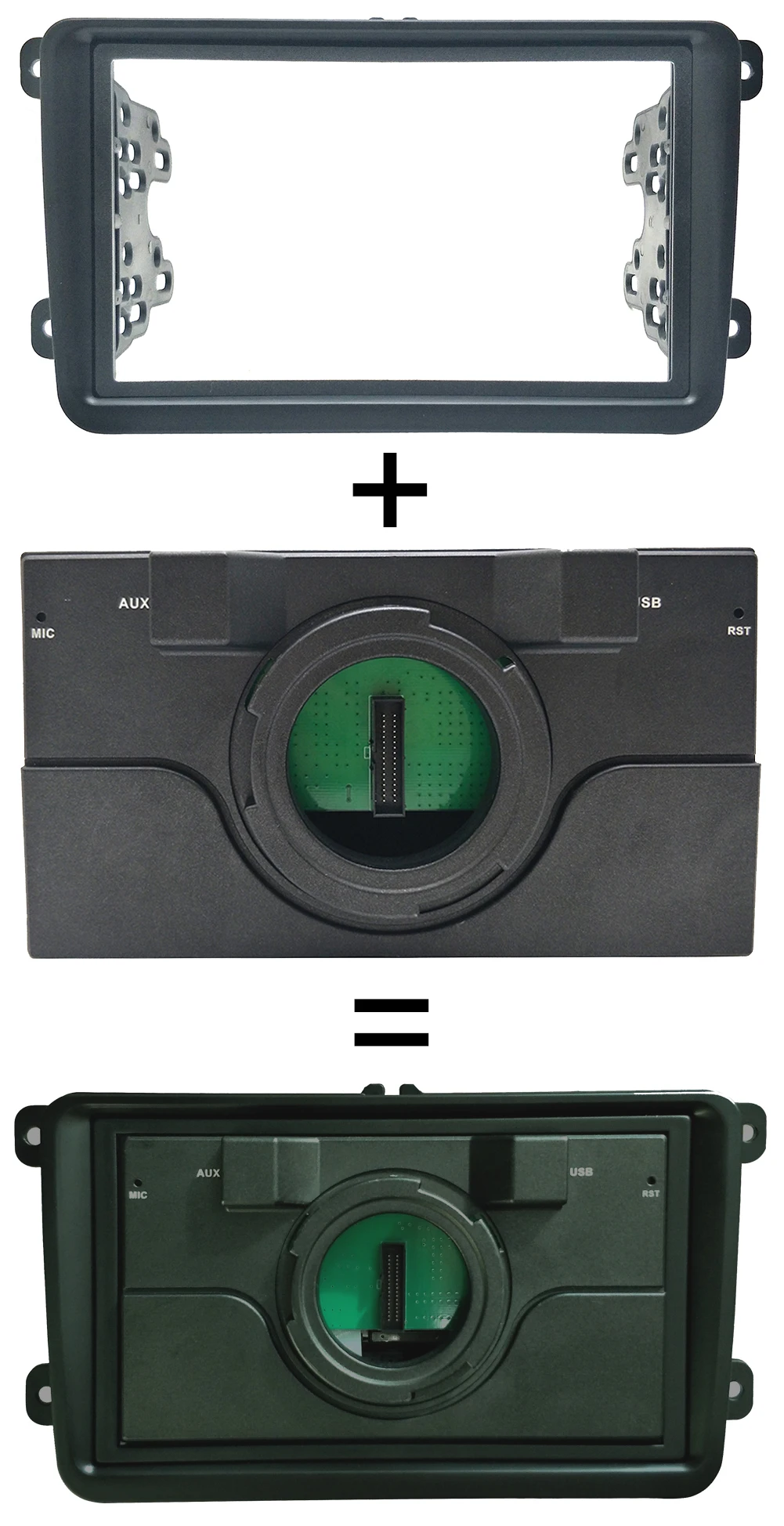Как будет включена следующая рамка vw, она добавит край нашего хоста, хост с рамкой идеально подходит для большинства старых автомобилей серии vw. Расстояние между экраном и хостом составляет около 6 см, размер экрана очень большой, он покрывает хост и рамку, поэтому после установки все устройство также очень красиво.