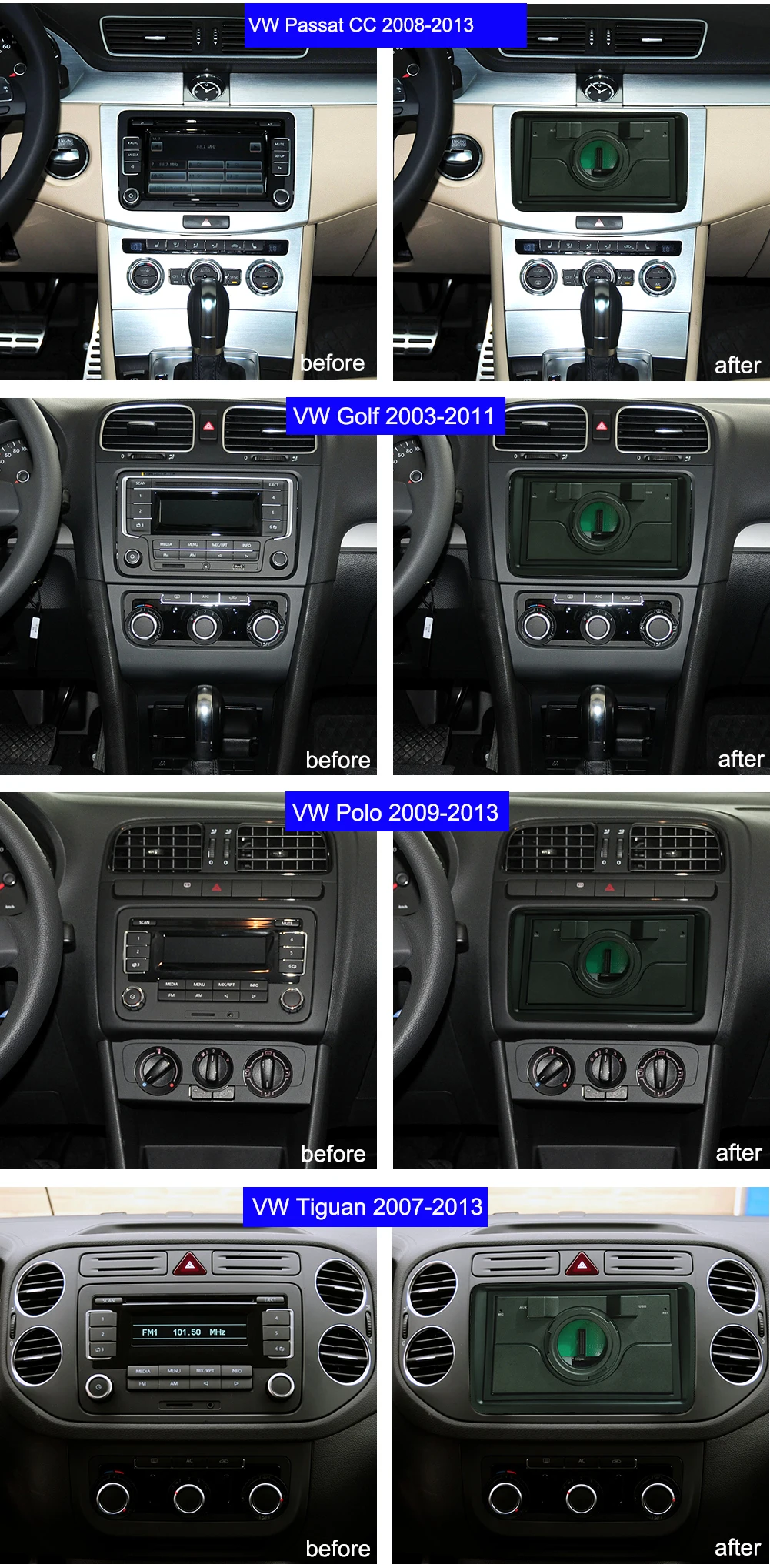 Эта модель специально для Volkswagen car's, сделанная до 2013 года, имеет специальную рамку, кабель питания, кабель передачи canbus и радио антенны, он может идеально поддерживать оригинальную информацию о автомобиле, такие как информация о двери автомобиля, датчик парковки и т. Д ..