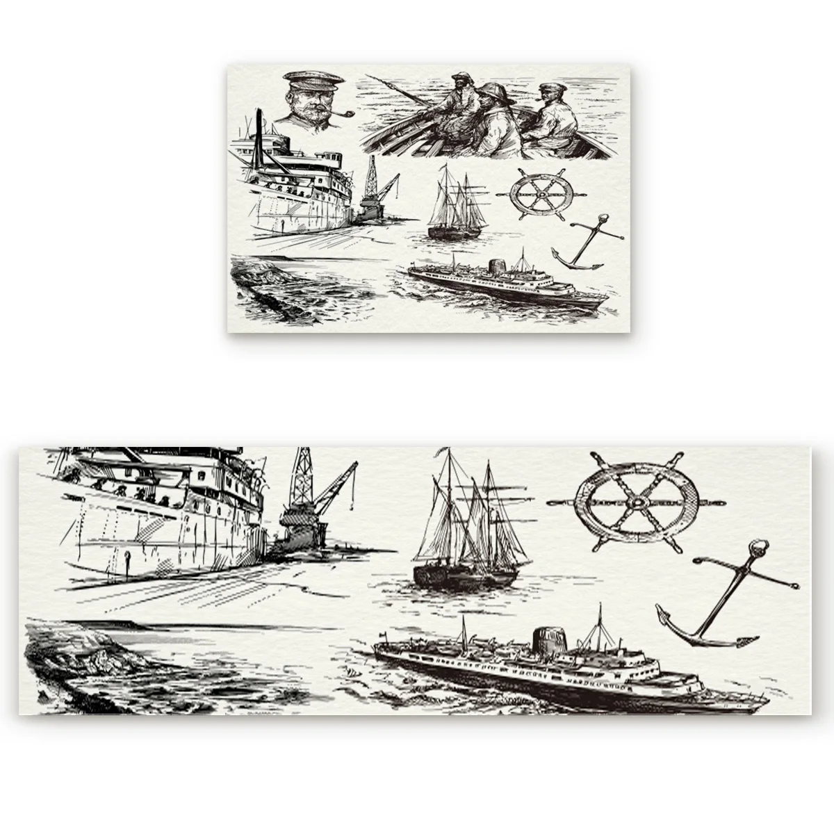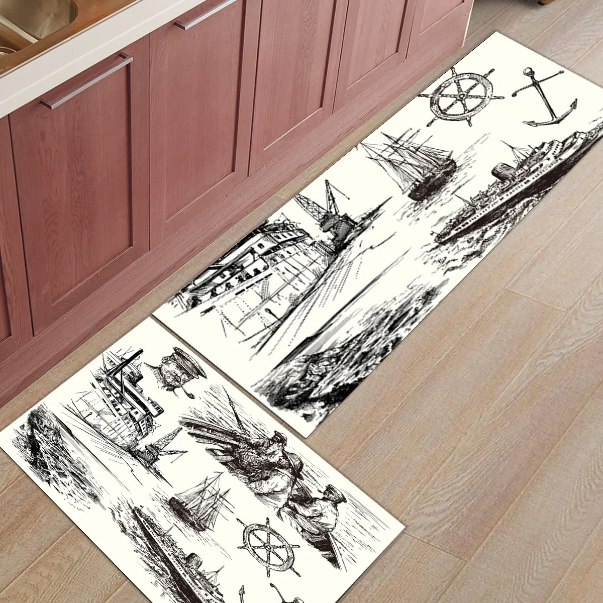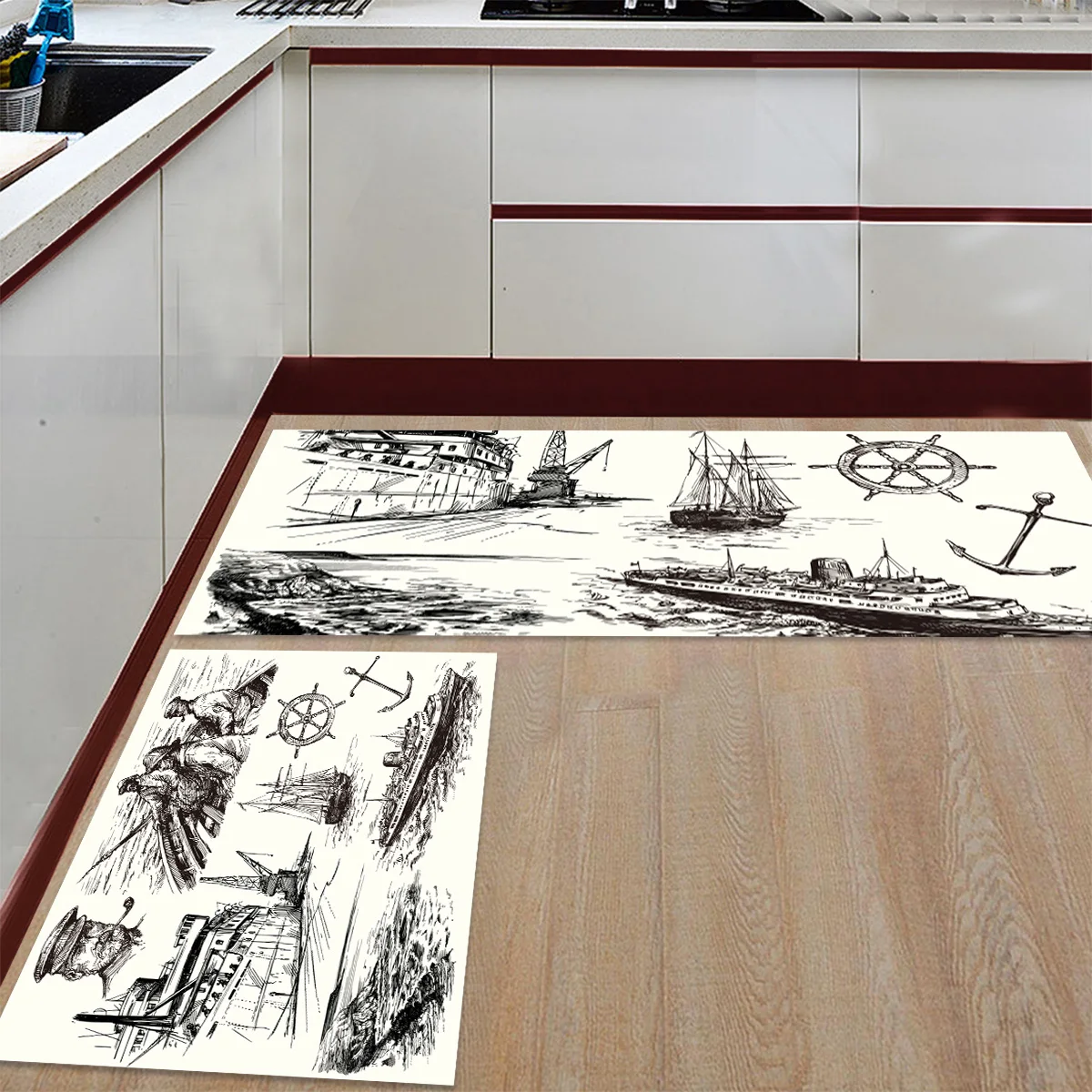Простой Морской кухонный коврик с кораблем, современные Противоскользящие коврики для ванной комнаты, коврик для гостиной, прихожей, Придверный коврик