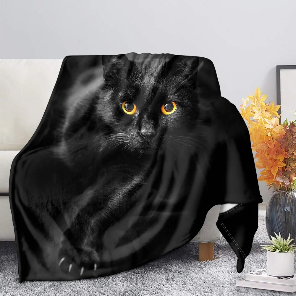 Бархатное плюшевое Флисовое одеяло с 3D принтом черной кошки, покры...