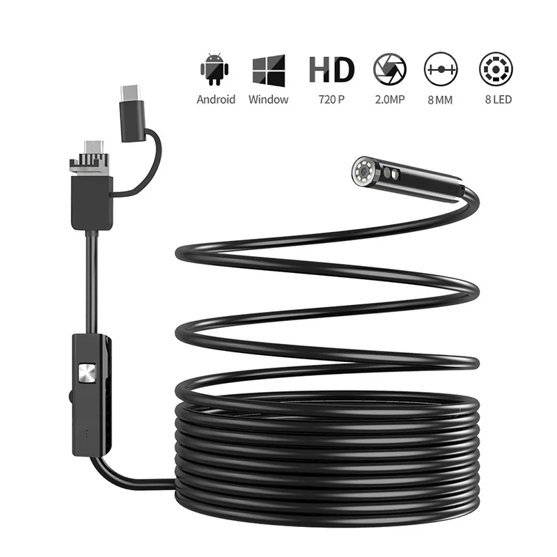 USB-эндоскоп 3-в-1 с двойным объективом, 8 светодиодный одов