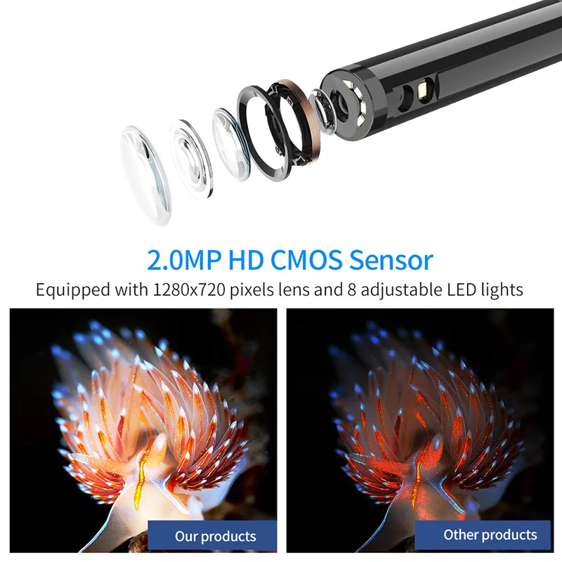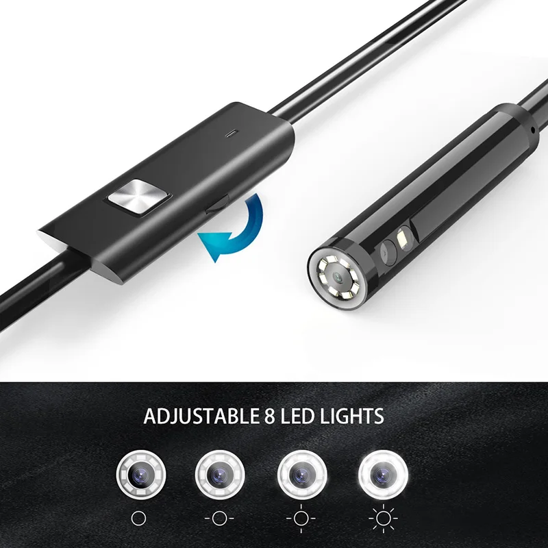4. С 8 регулируемыми светодиодами на наконечнике камеры, это значительно помогает улучшить яркость и четкость изображения даже в условиях темного или низкого светильник, и позволяет работать намного лучше.