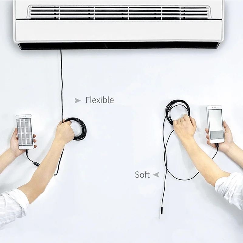 5. Пожалуйста, сначала проверьте модель вашего телефона. Эндоскоп с гибким полужестким кабелем, который может сгибаться и удерживать форму, чтобы получить доступ к широкому разнообразию узких мест, таких как изогнутые отверстия или трубы. Это имеет огромное значение для указания и позиционирования камеры для разных углов использования.